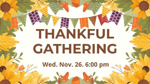 Join us for our traditional Thanksgiving eve service. We will offer worship and thanksgiving to God for all He has done for us. This is a one-hour service for the whole family.